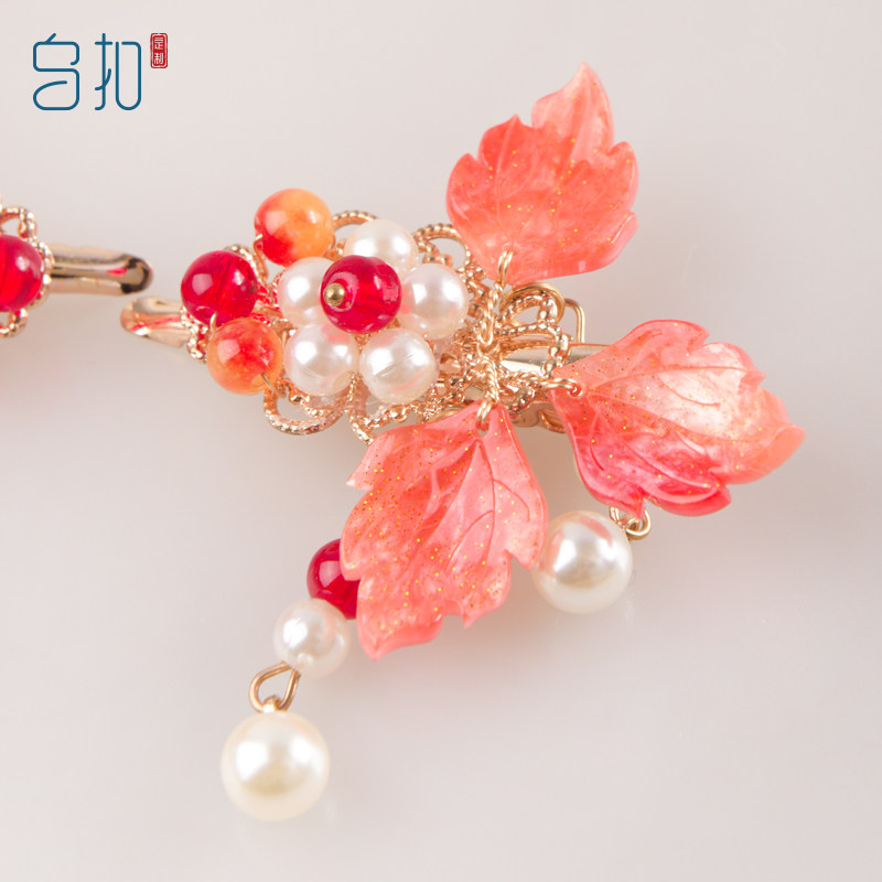 Ubuckle Maple Leaf Red Girl Hanfu Hair Accessories Children China Wind Ancient Clothing Accessories Hair Clip-Taobao