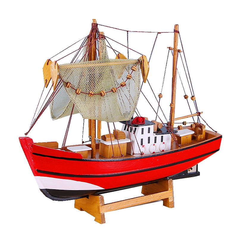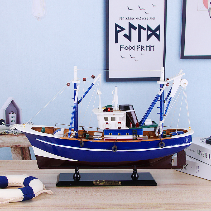 Simulation fishing boat model swing piece Mediterranean style real wood craft boat sailing model small boat gift handicraft-Taobao