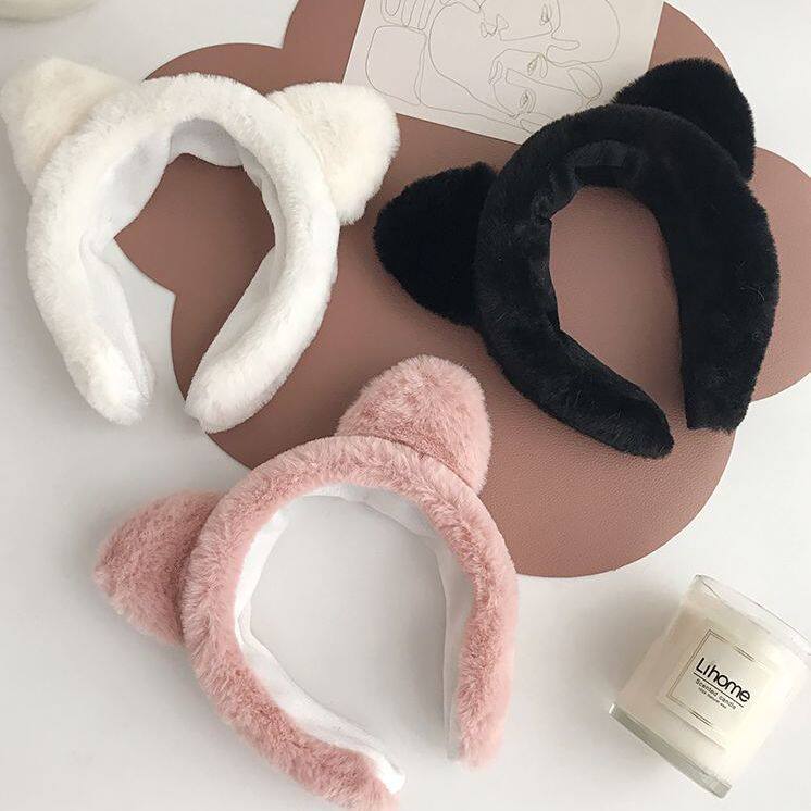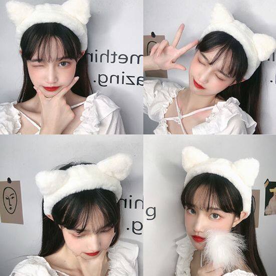 South Korean plush cat ears up face haircut Hair Hoop Cute Headgear Wide Side Makeup Facial Mask Hairpin Hairpin Hair with headwear-Taobao
