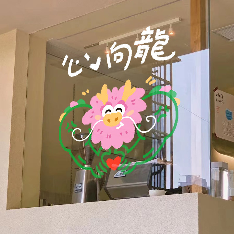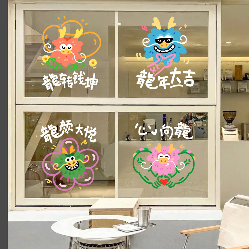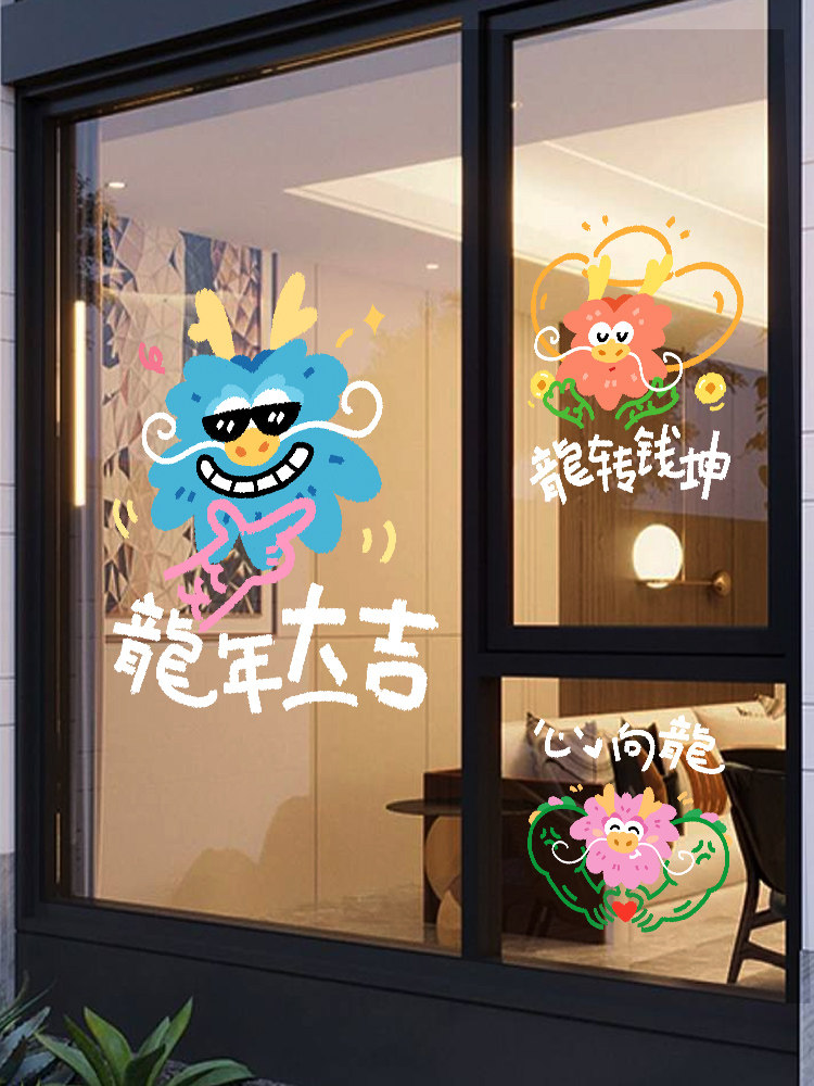 2024 dragon year New Year decorations stickers Spring Festival window glass glass door Electrostatic Wall Sticker painting New Year Scene Placement-Taobao