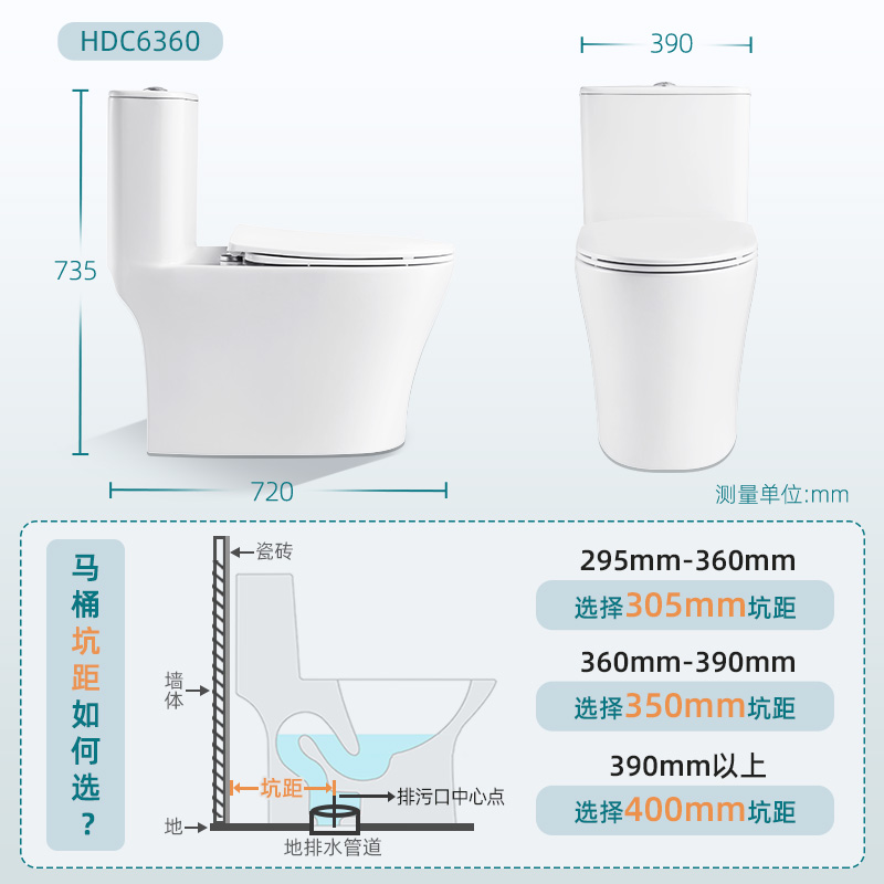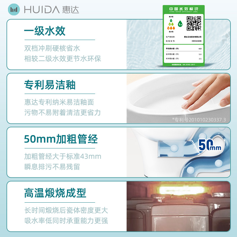 HD6360 double swirling flush 50mm large pipe diameter antibacterial cover plate guarantee free installation