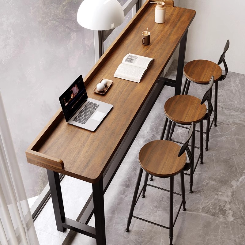 balcony bar desk table home minimalist solid wood long bar table close to window narrow table high and low foot long table high foot table and chairs against wall-Taobao