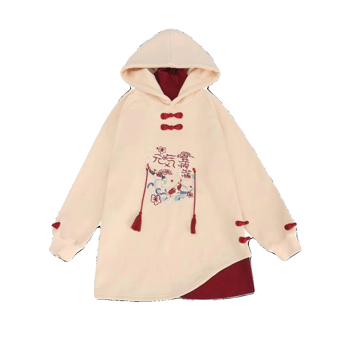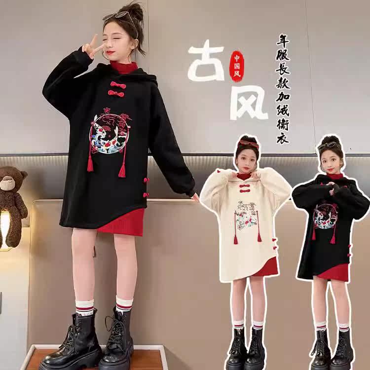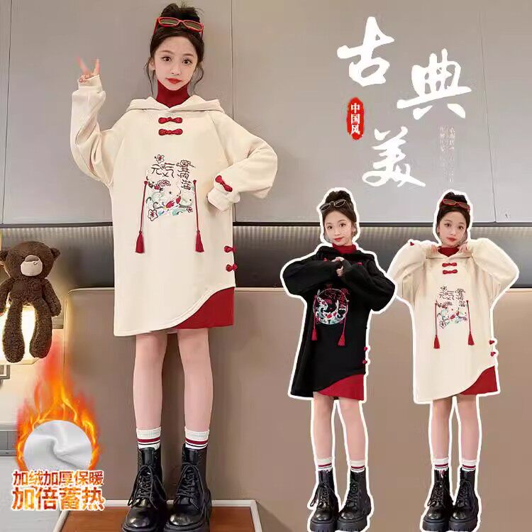 New Year's clothes Girls plus velvet clothing Winter skirts foreign piste girls Bayou New Chinese style New Chinese one-piece dress-Taobao