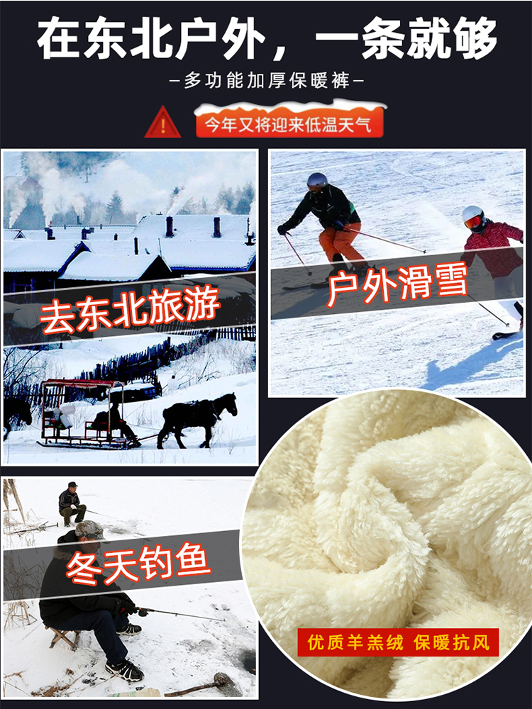 Minus 40-degree flush pant pants male and female waterproof windproof ski P cotton pants warm northeast Harbin Anti-cold lamb suede-Taobao