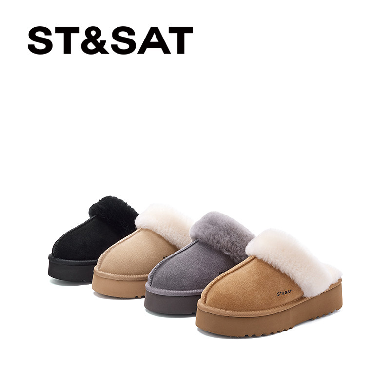 Saturday Cotton Slippers Women Winter gush outside wearing sloth shoes 2023 New flat heel Baotou slippers wool shoes-Taobao
