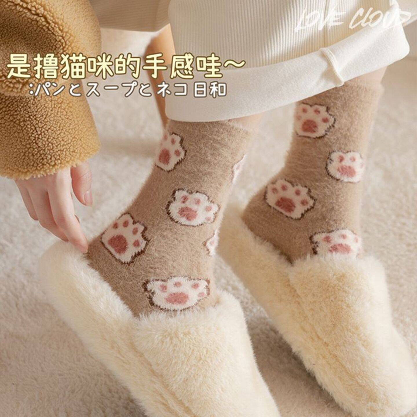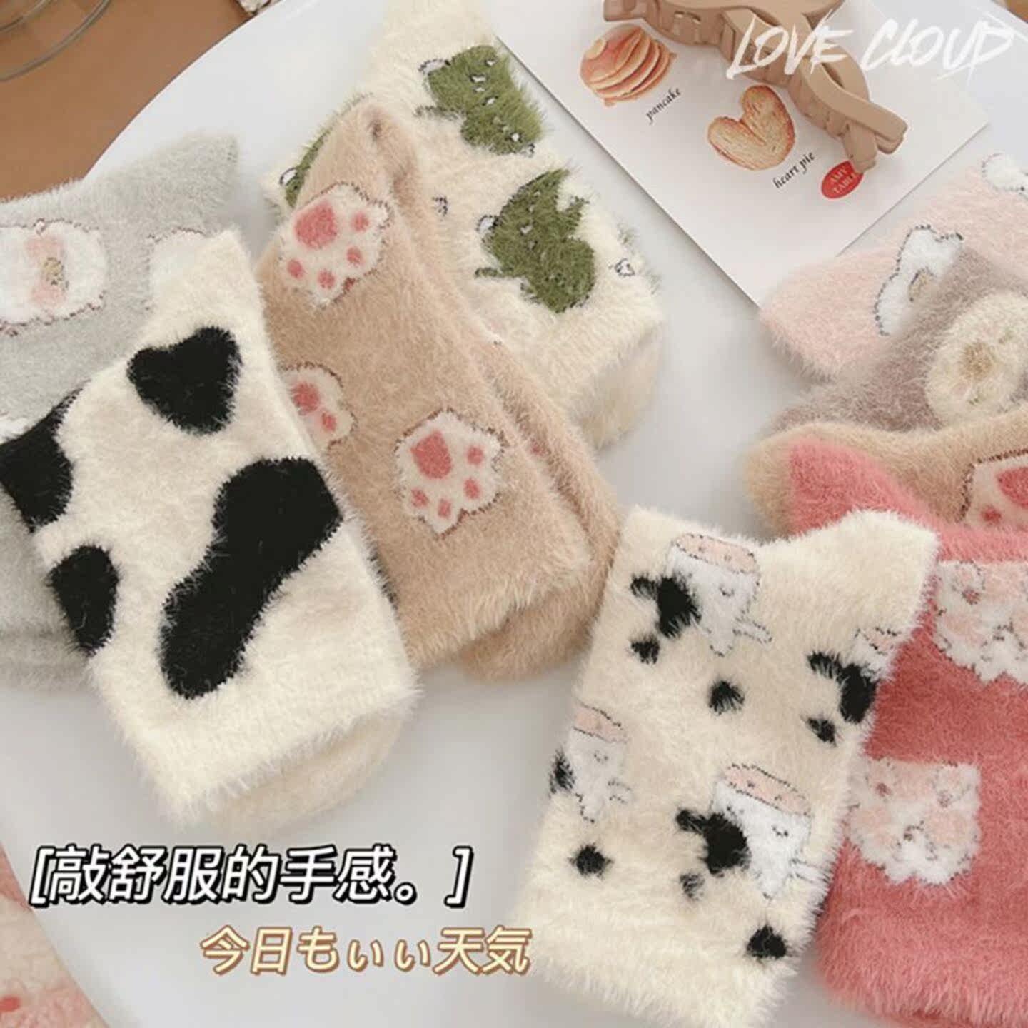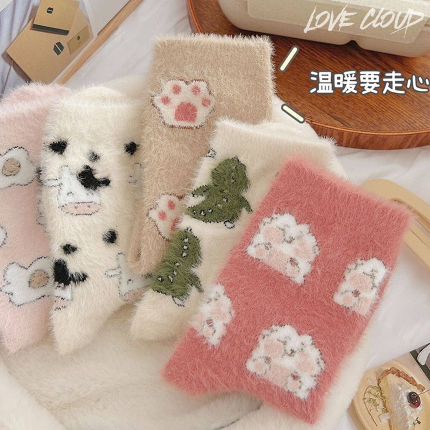 Gross Wool Socks Winter Water Mink Suede Socks Woman Midbarrel Socks Warm Cartoon Long Barrel Home Floor Lunar Sleeping Socks-Taobao