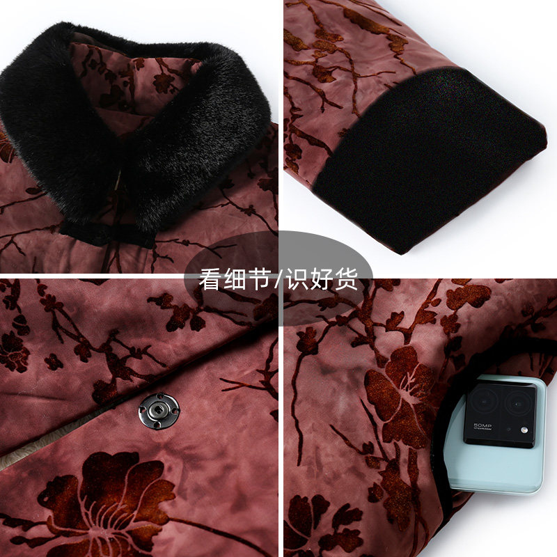 Grandma's winter dress plus suede thickened cotton padded jacket for elderly female moms stand warm cotton clothes old lady's cotton coat-Taobao
