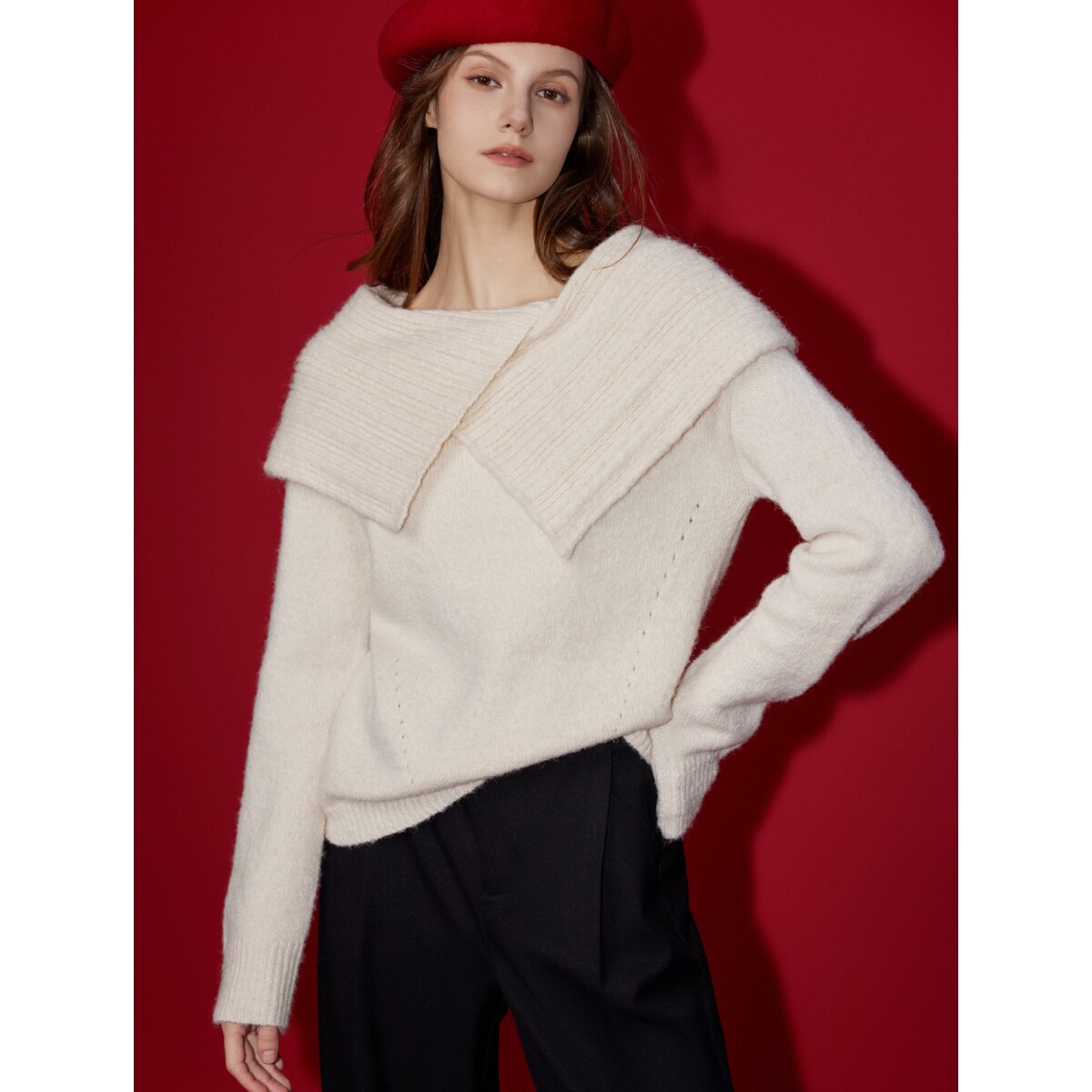 (New Year's series) ELLE Big Turnover Christmas Red Sweater Women 2024 Spring new design Feel Knitted Cardigan-Taobao