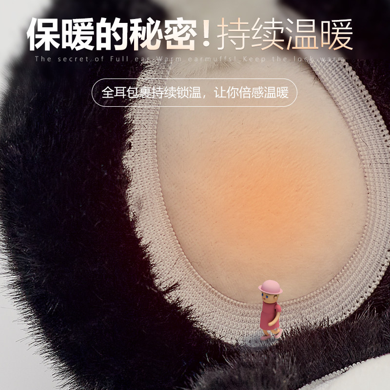 Woolen suede adorable panda ear hood female winter warm anti-wind chill student anti-ear bag foldable ear warm ear sleeve-Taobao