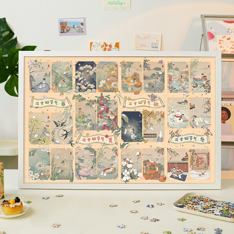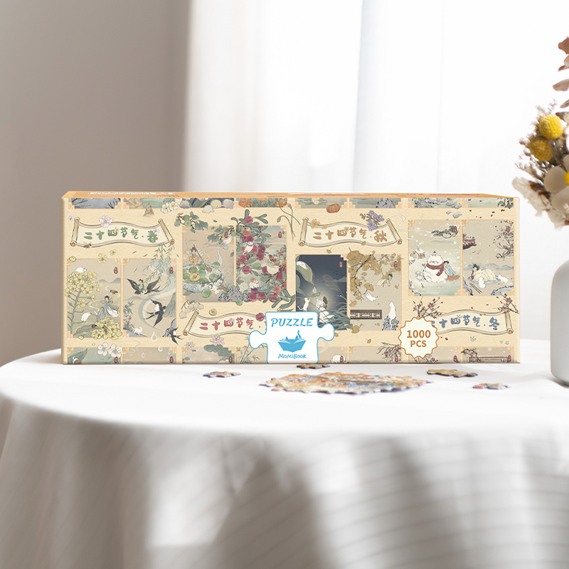 1000 pieces-One year good view 1000 pieces-Dragon years touch Hu 1000 pieces-Mid-Mountain Listen to the Rain Puzzle White Puzzle Frame Jigsaw Puzzle Coffee Color Solid Suspension box