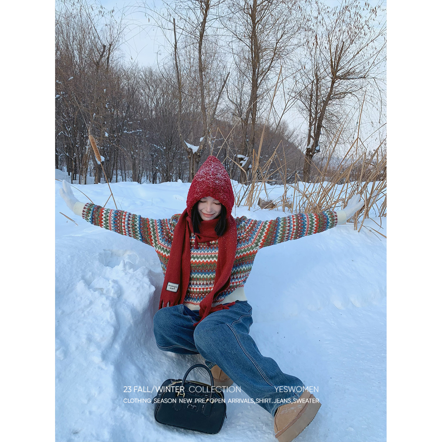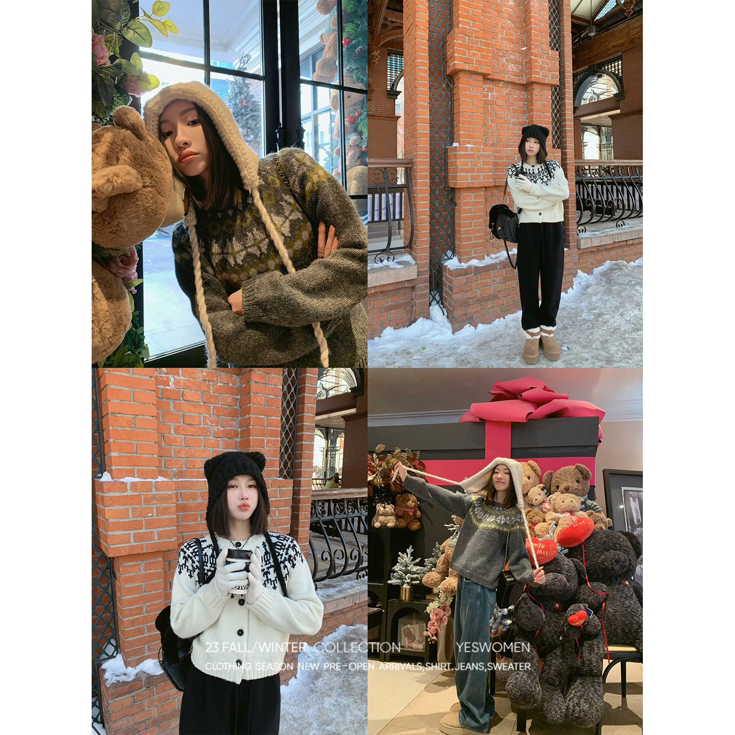 Small and pleasant custom Christmas series sweater-retro-reduced age Warm Atmosphere Sensation New Medium Long Style Jacket Autumn Winter-Taobao