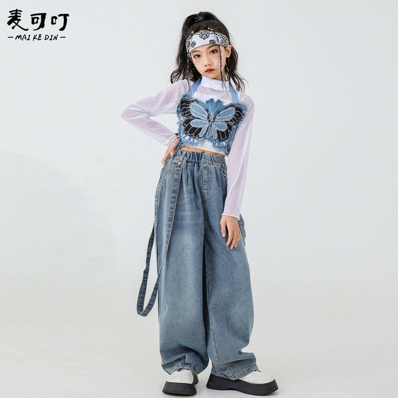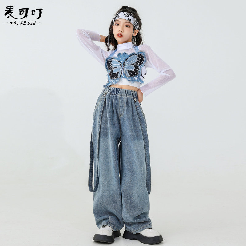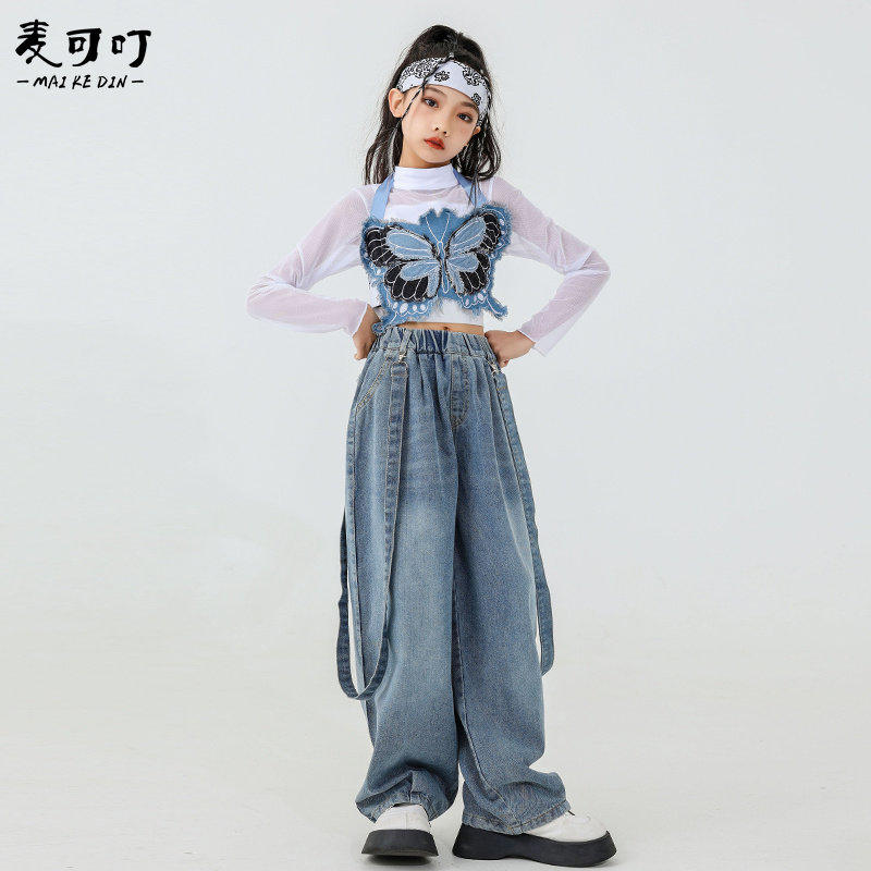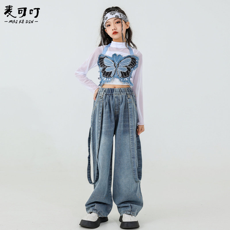 Two sets (butterfly harness harness jeans) Two sets of black and white square towels three sets (butterfly harness harness jeans denim white mesh yarn blouse) Three sets of black and white squared scarves (