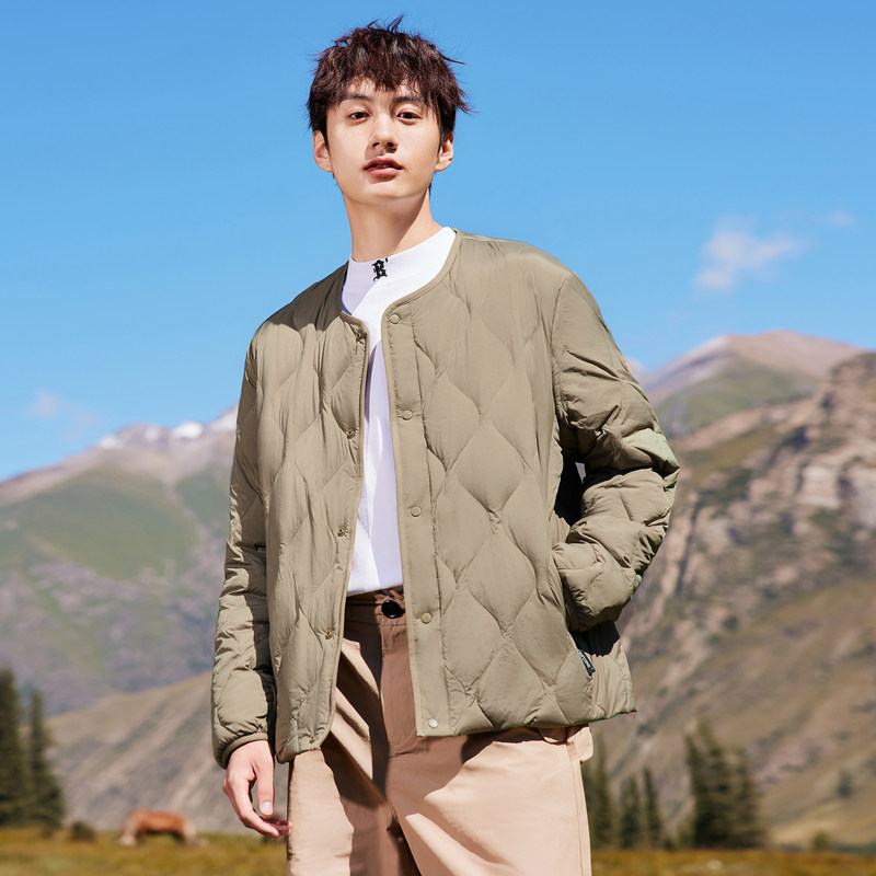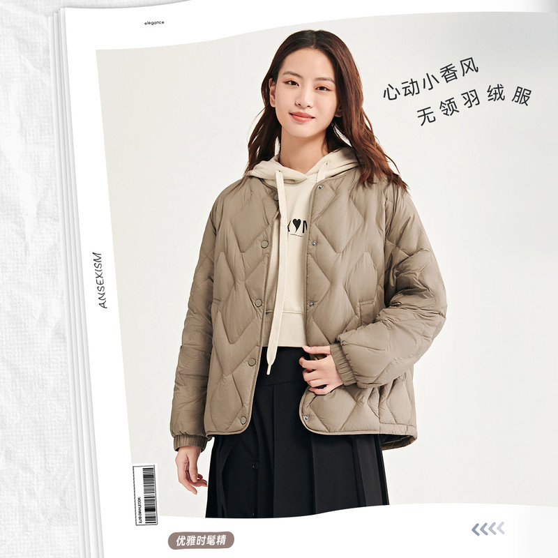 Snow medium flying 2023 autumn and winter new men and women short and down clothes comfortable and delicate pro-skin fashion metropolitan round collar light-Taobao