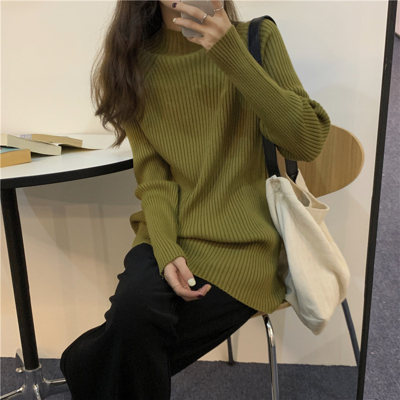 South Korea Relaxed Ocean Gas Thicken Half-High Collar Sweater Women's Autumn Winter New Shades Right Shoulder Blouses Knitwear-Taobao