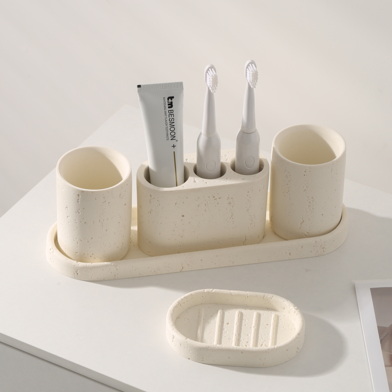 Rice white oral cup rice white conventional toothbrush holder rice white electric toothbrush holder four pieces (2 cups 1 tray 1 electric toothbrush holder) Five pieces of cover (2 cups 1 soap dish 1 bottle 1 regular toothbrush