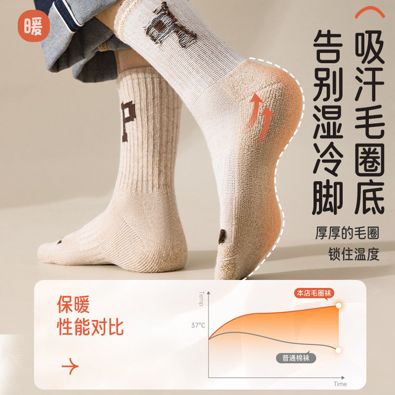 Thick Socks Men's Winter Middle Silo Socks Garnter Thickened Cashmere Towel Bottom Cotton Socks Winter Warm Flooring Long Barrel Socks-Taobao