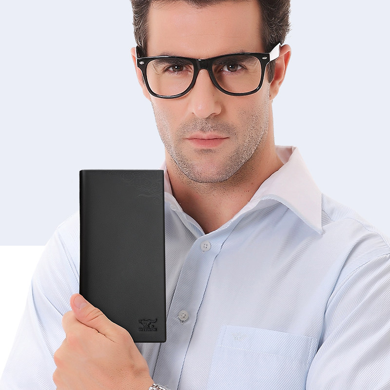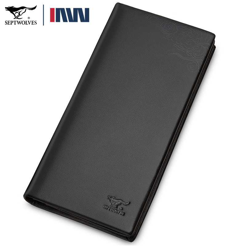 Seven Wolves Long Money Wallet Men Genuine Leather Money Clip Business Headlayer Bull Leather Wallet Leather Men's Handbags 2023 New-Taobao