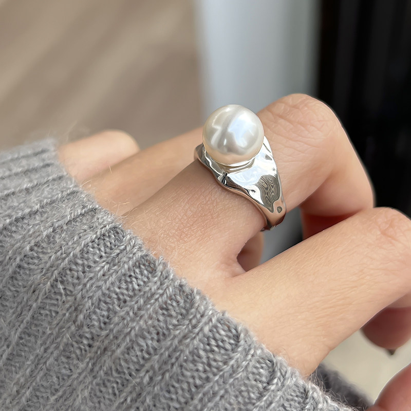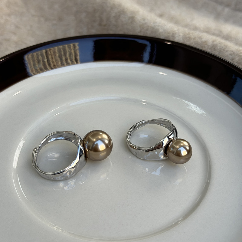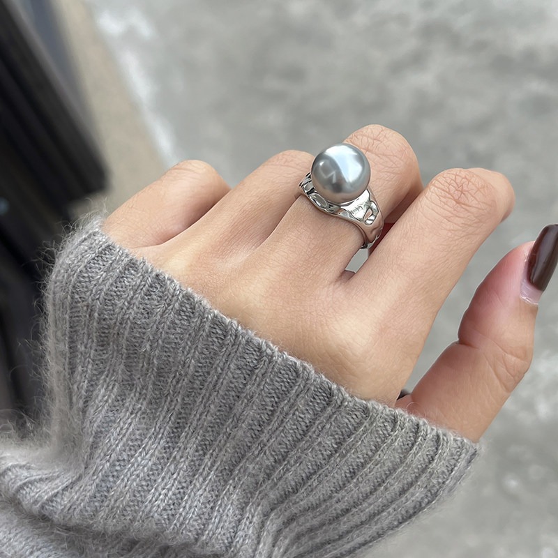 Fang Sugar Home Maillard Autumn Winter Pearl pure silver crewy wide version of the ring lukewarm senior feel light and luxurious crowdring-Taobao