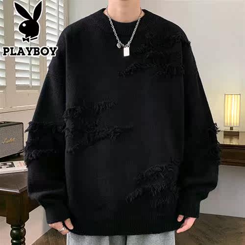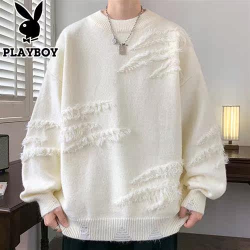 Flower Playboy round collar sweater for men's spring and autumn season new trends Loose Needle Weaselweaters Dress Men's Clothing Day Ensemble Vintage-Taobao