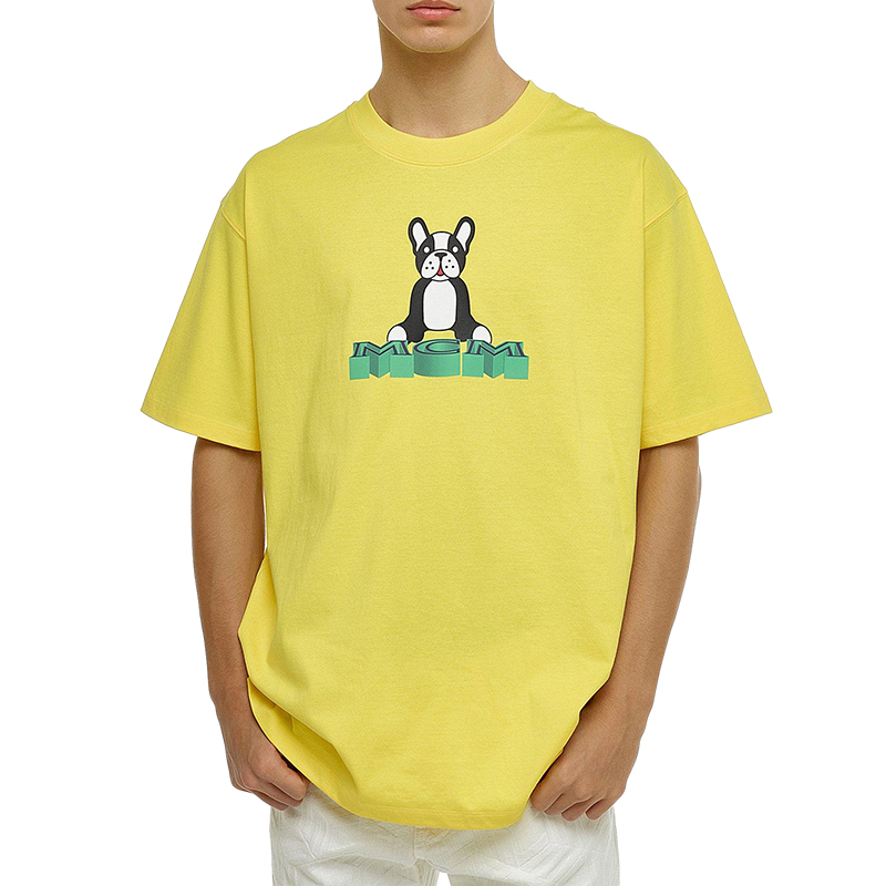 (self-employed) MCMT-shirt yellow organic cotton material casual fashion 100 lap texture black and white puppy MHTCSS-Taobao