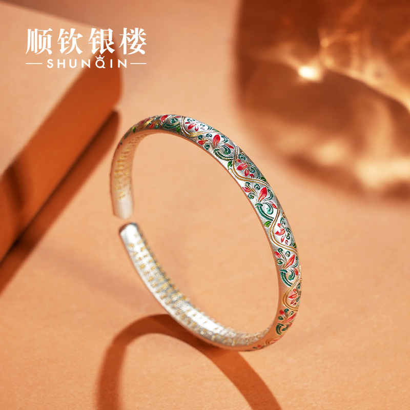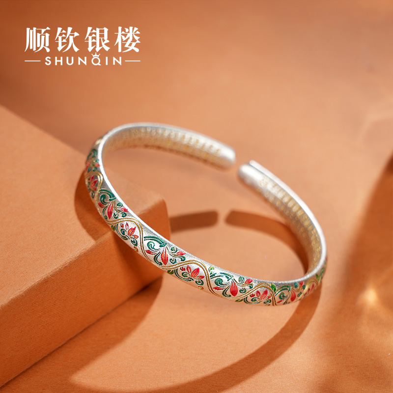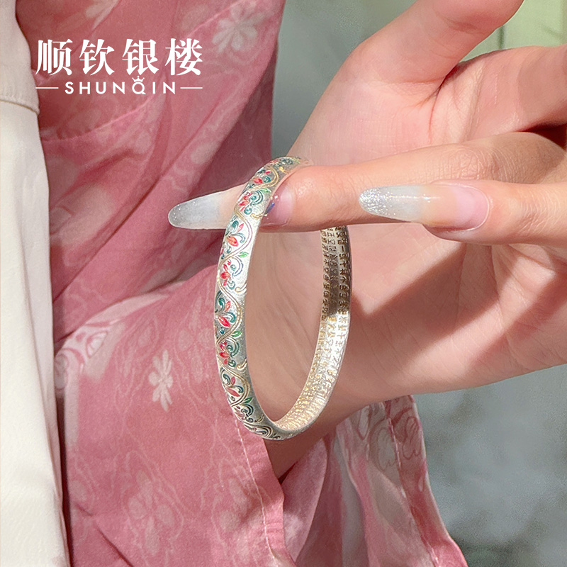 Shunqin silver building S9999 pure silver bracelet woman Lin Luang yin silver bracelet sub national tide ethnic wind lover friend gift-Taobao