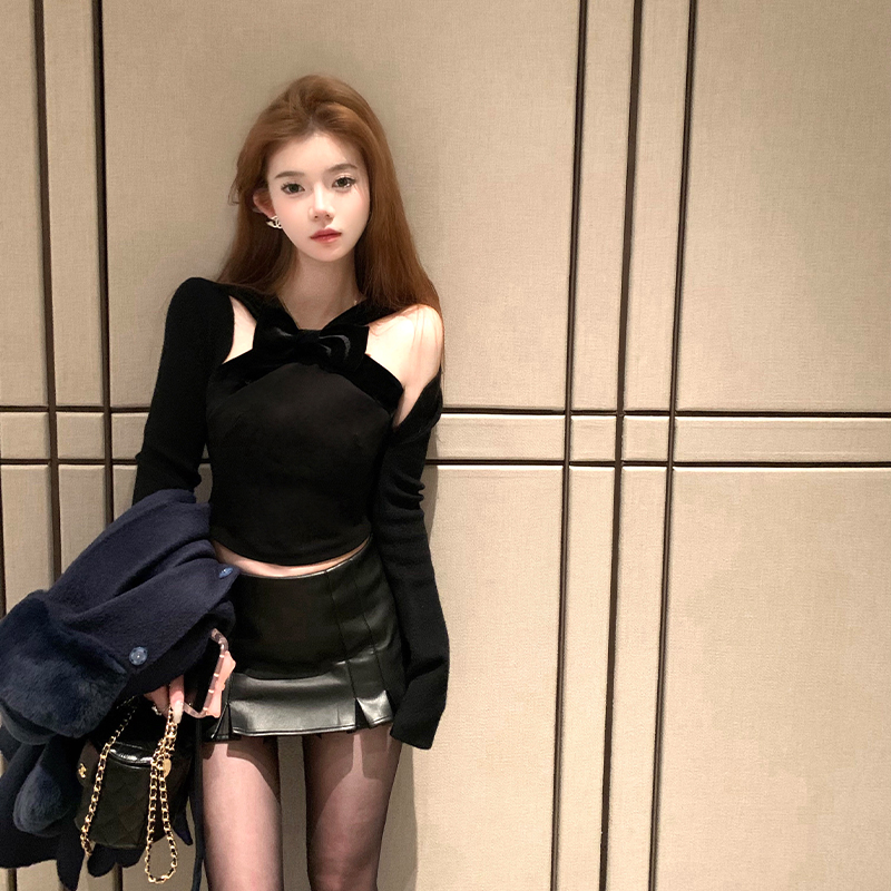DoggyQin Women's Group Leather Dress Pants Sweet Miu Wind Pink Small Leather Skirt Woman Low Waist Display Slim Hot Girl A Character Half Skirt-Taobao