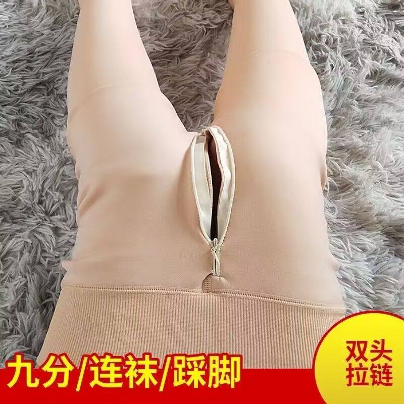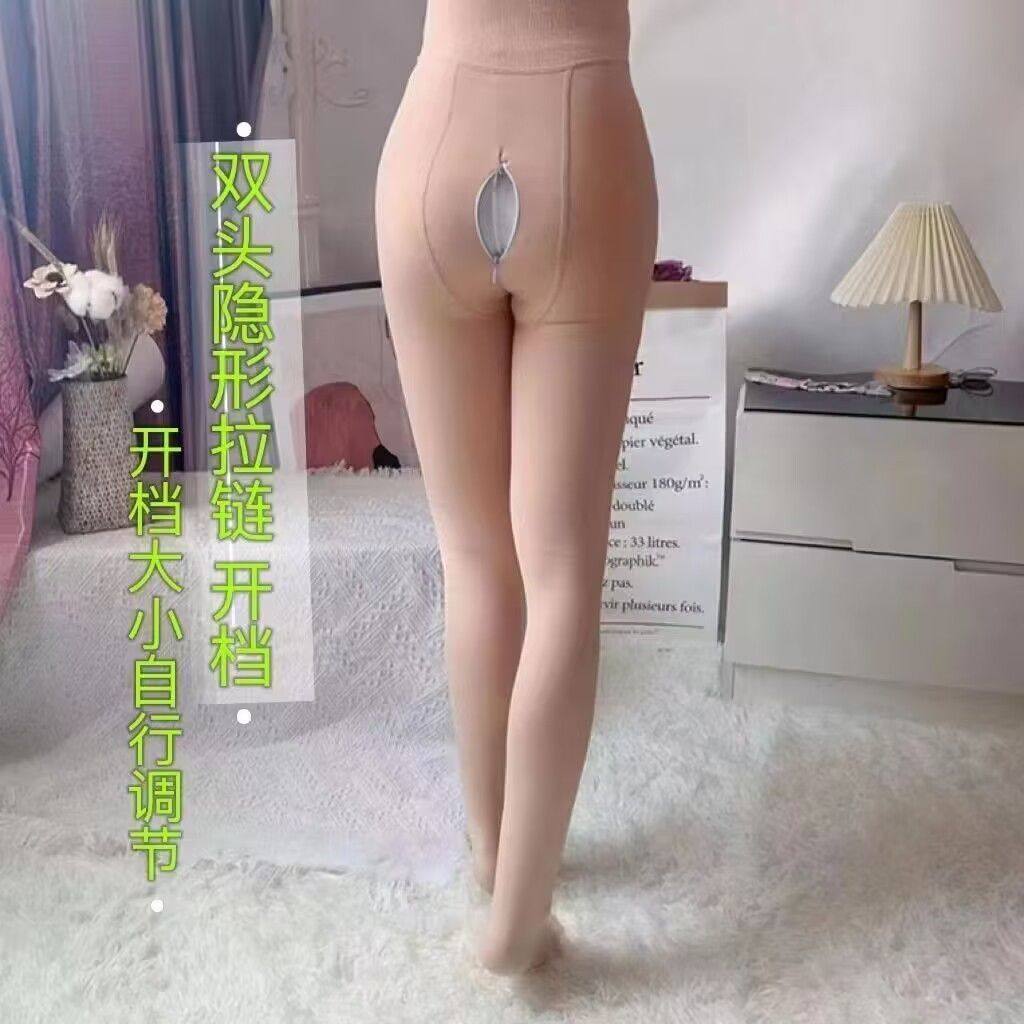 Double head zipped open crotch Even pantyhose invisible autumn and winter plus suede thickened high waist meat color open gear for underpants ladies big code-Taobao