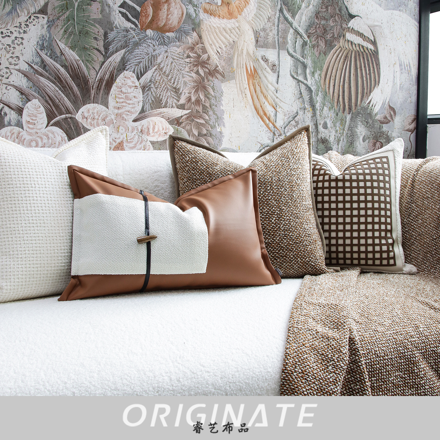 Nordic modern minimalist light lavish curry leather holding pillow combined living room sofa cover with home pillow backrest padded square pillow-Taobao