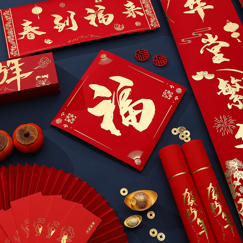 2024 Advertising couplets for custom dragon year bronzing gift box Spring Festival couplets to make Spring Festival Fuwordbig gift bag spot print logo-Taobao