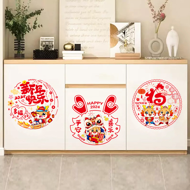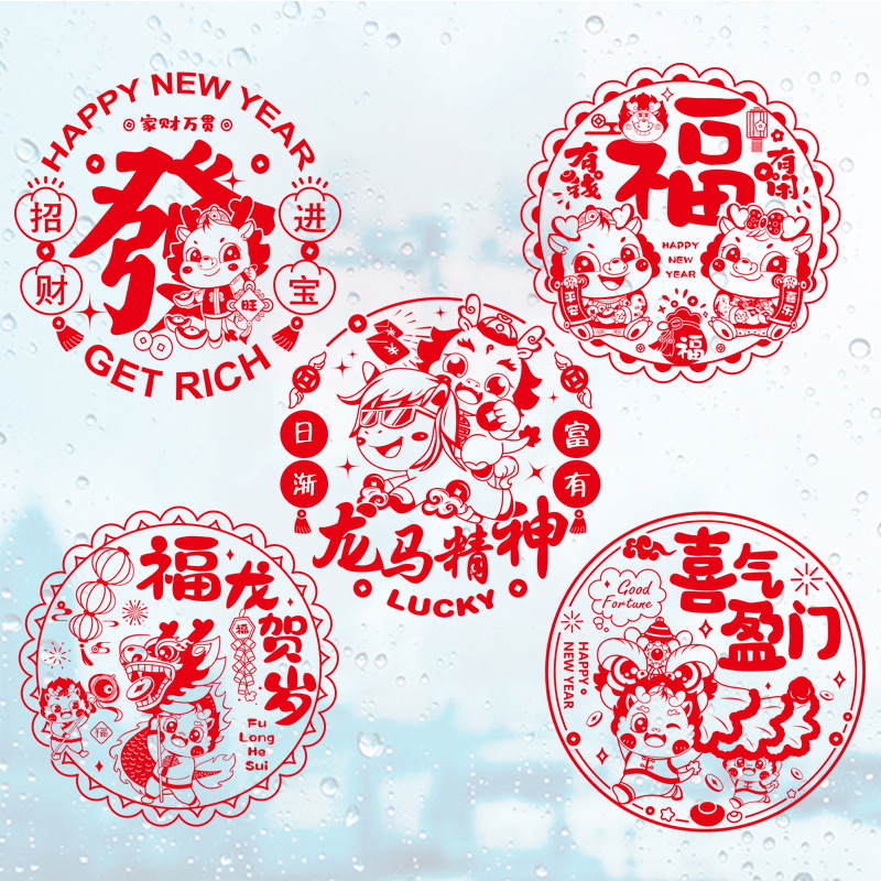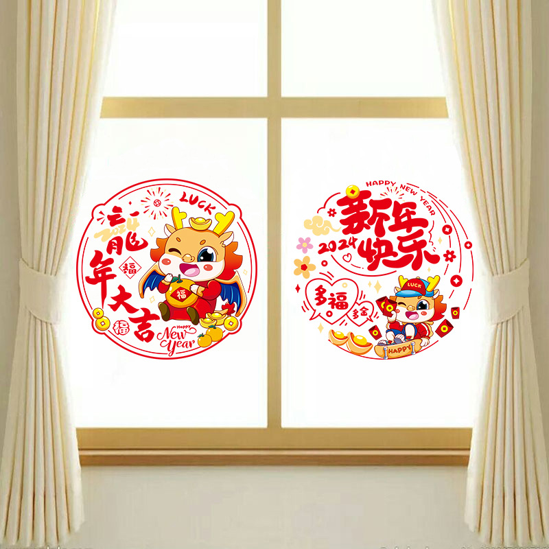 Window Flower Fufu character 2024 new door sticker dragon year special Happy Chinese New Year electrostatic wedding Spring Festival couplets Spring Festival couplets Couplets Decorations-Taobao