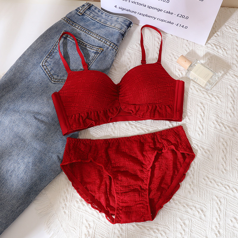Lace Lingerie Women Gather Small Breasts Autumn Winter Thickened with Explicit Chest Large Upper to receive Breast Anti Drooping Bra Suit-Taobao