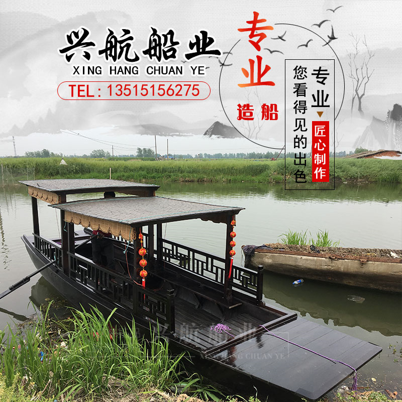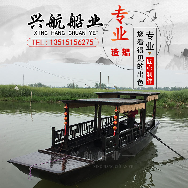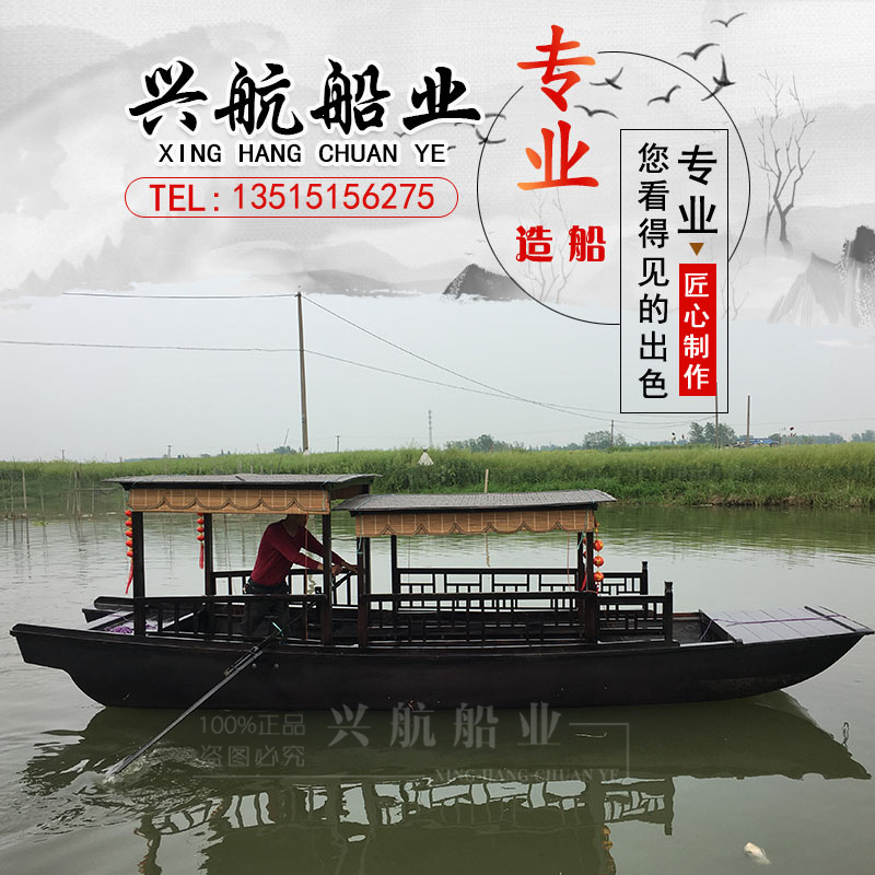 Wooden boat imitation ancient hand paddling single double fluffy electric water tourism sightseeing painting Dining Wedding Scenic Spot GRP-Taobao