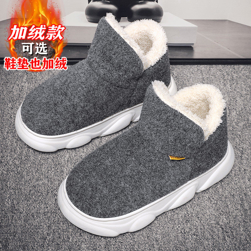 Cotton Slippers Men's Winter Season Home Indoor Plus Suede Warm Bag Heel Cotton Shoes Outwear Waterproof Non-slip Northeast Snowy Boots-Taobao