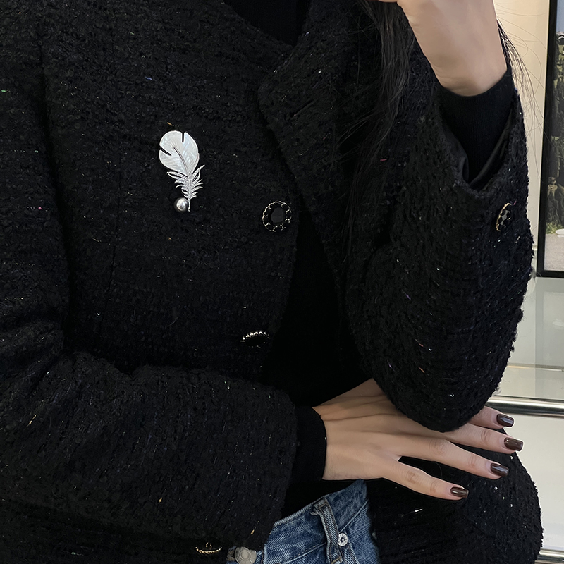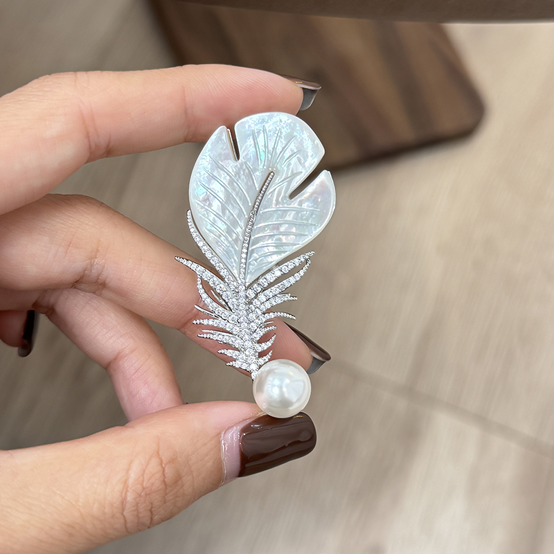 High-end fine work fritillary feather pearl brooch with small crowdsourced autumn and winter upscale women's breasts-Taobao
