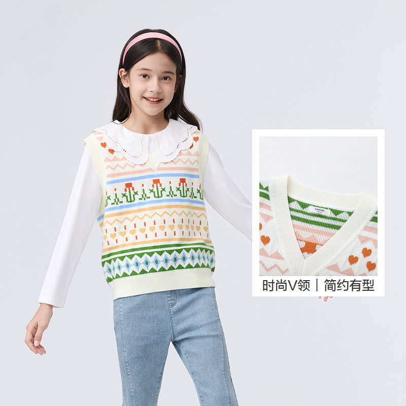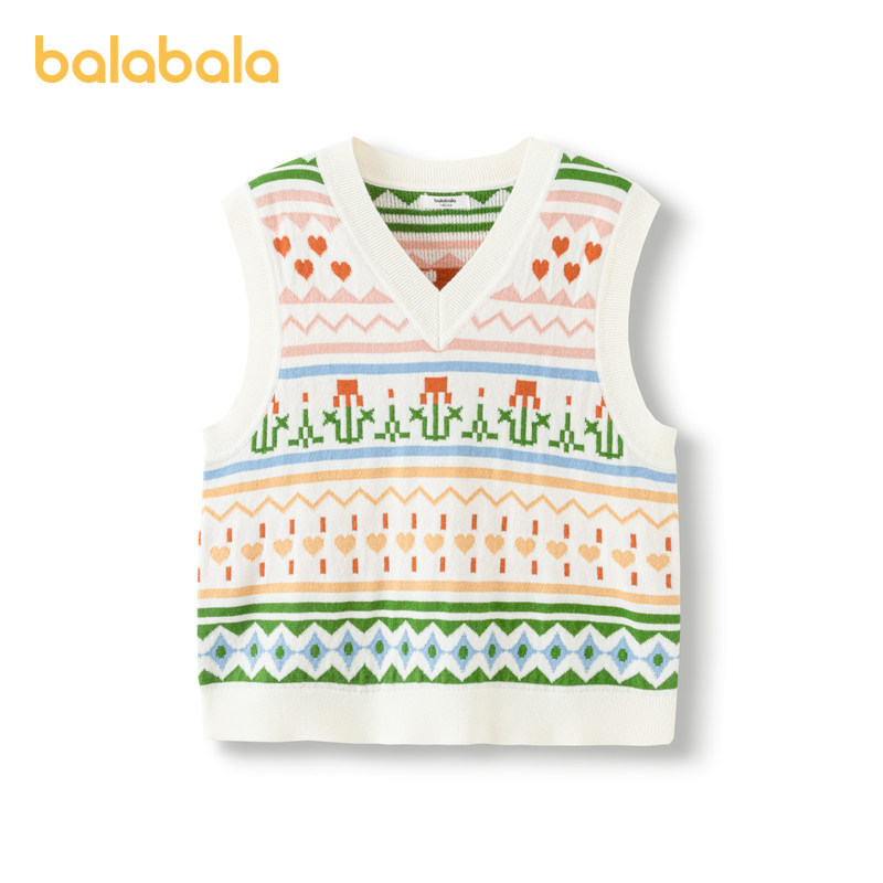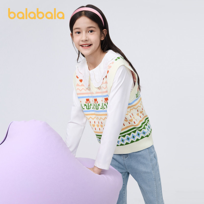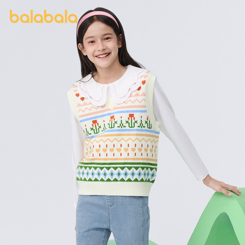 Balabala Children's waistcoat girl vest 2024 new spring dress CUHK Tong knit Nets sweet jacquard Chatide-Taobao