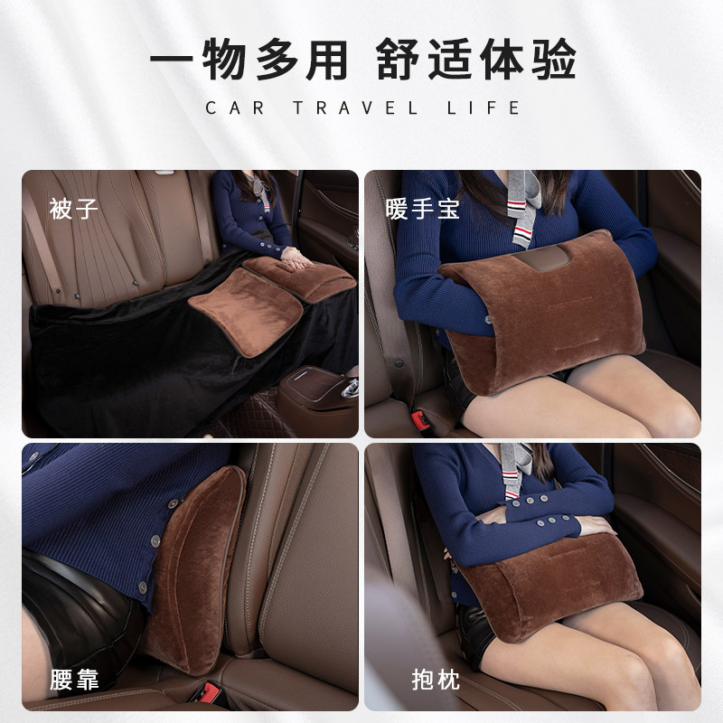 Multifunctional car hug pillow quilt dual-use autumn and winter day thickened vehicle air conditioning quilted by pillow waist with warm hands three-in-one-Taobao