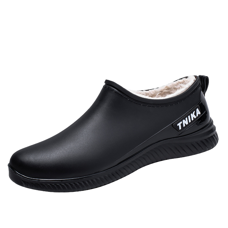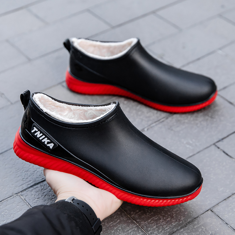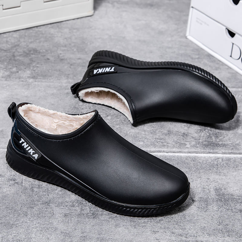 Integrated fixed suede male short drum Rain shoes Autumn winter plus suede waterproof rain boots Low Gang Shallow Mouth Anti Slip Warm Kitchen Rubber Shoes-Taobao