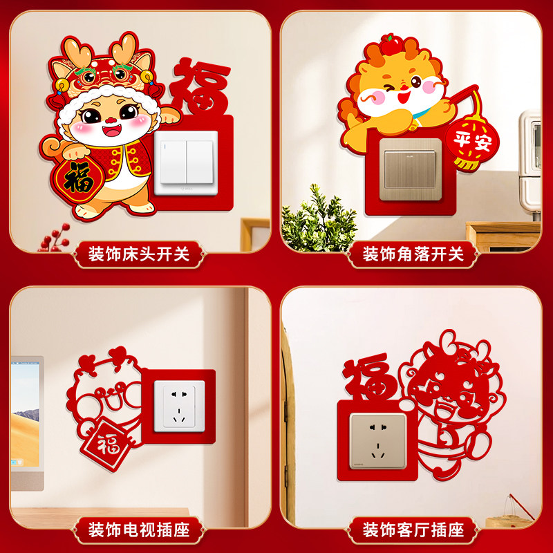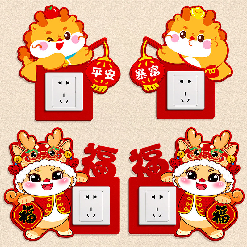 Dragon Year Creative Cartoon Switch Sticker 2024 New Year decorations Fucalligraphy with Spring Festival Living room arranged Spring Festival decorations-Taobao