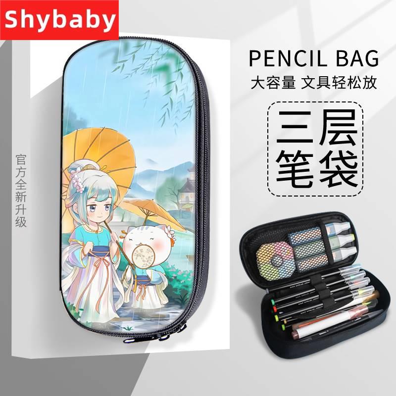 Cartoon if history is a group of meow Canvas Multifunction Pen Bag Multilayer Large Capacity Cute Creative University High School High School Students Junior Students Mini Pencil Bag Pop Containing Box-Taobao