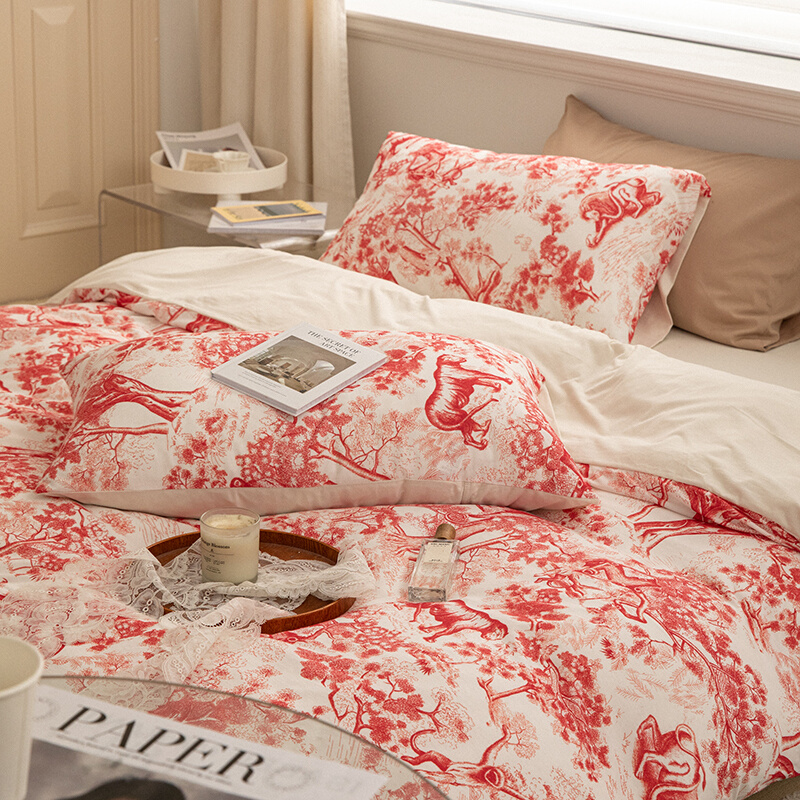 Hot sell A class full cotton Tianzhu cotton four pieces Naked Sleeping Printed Pure Cotton Quilt Cover Bed Linen Bed with 4 pieces-Taobao