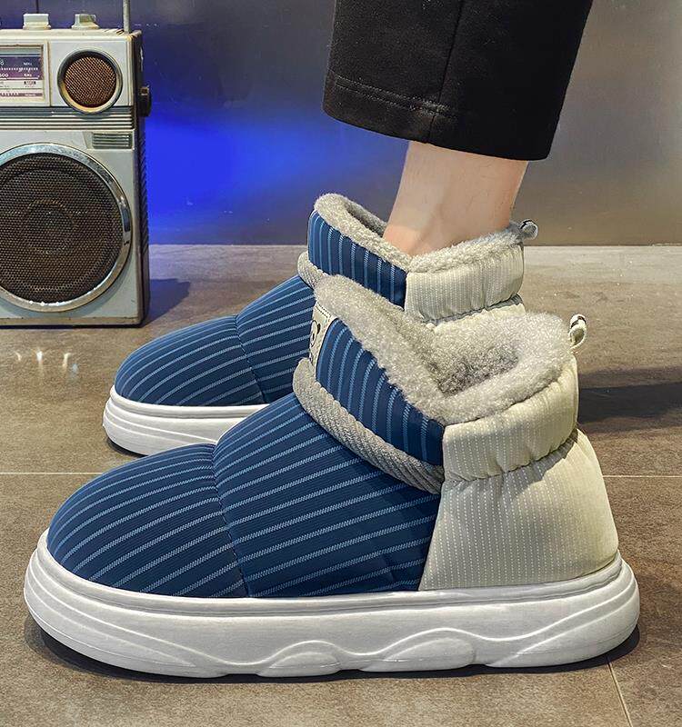 Cotton slippers men's section 2023 new winter gush warm home indoor waterproof non-slip bag heel Tohoku cotton shoes-Taobao
