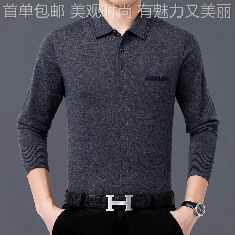 Fall Cashmere Long Sleeve Shirt Male Style Old 8857-ii Year Over Leader Undershirt Dad Beat Thin 100 Lap Fashion Champs-Taobao