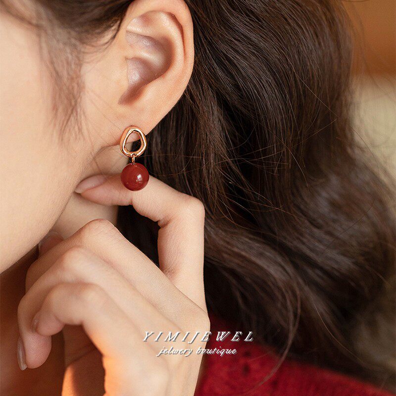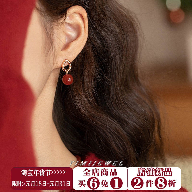 "Monica" natural red Manau ear nail New Chinese New Year's ear clip No earrings to the women's New Year holiday red earrings-Taobao
