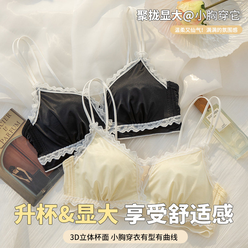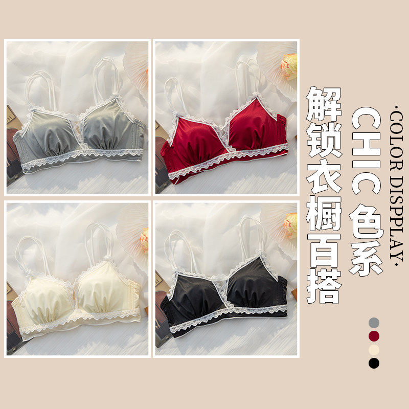 French beautiful back underwear women's thin small chest push-up red wedding sexy bra set