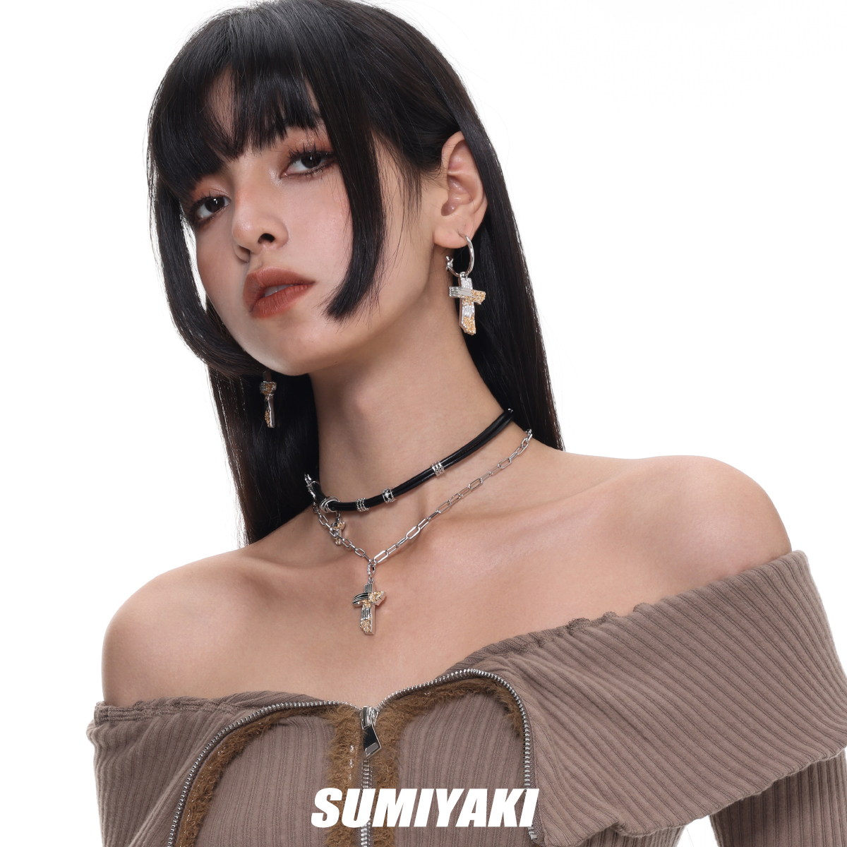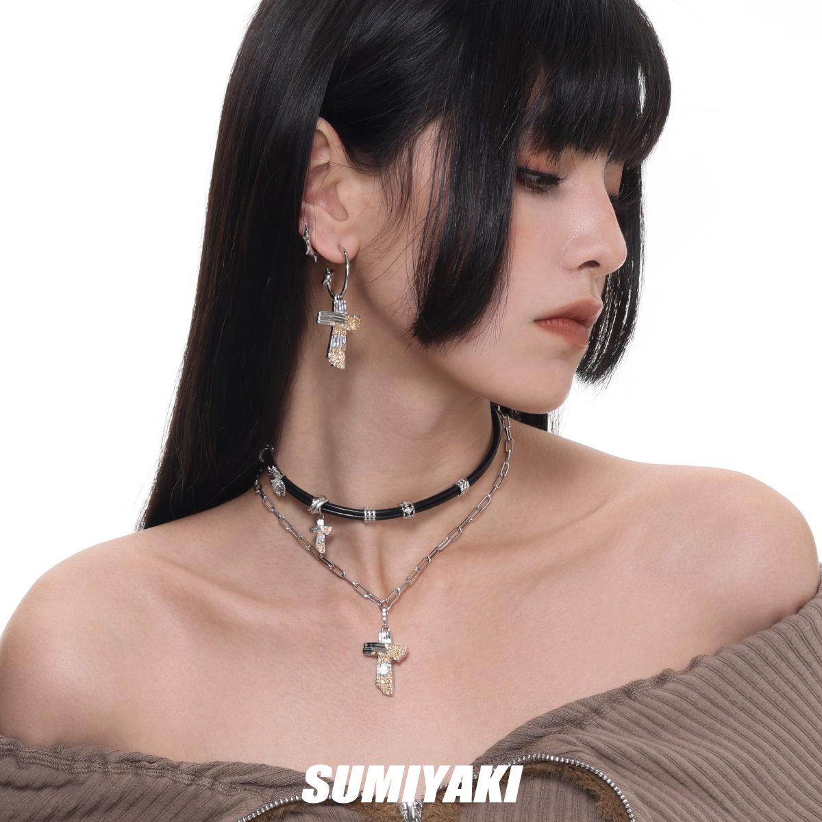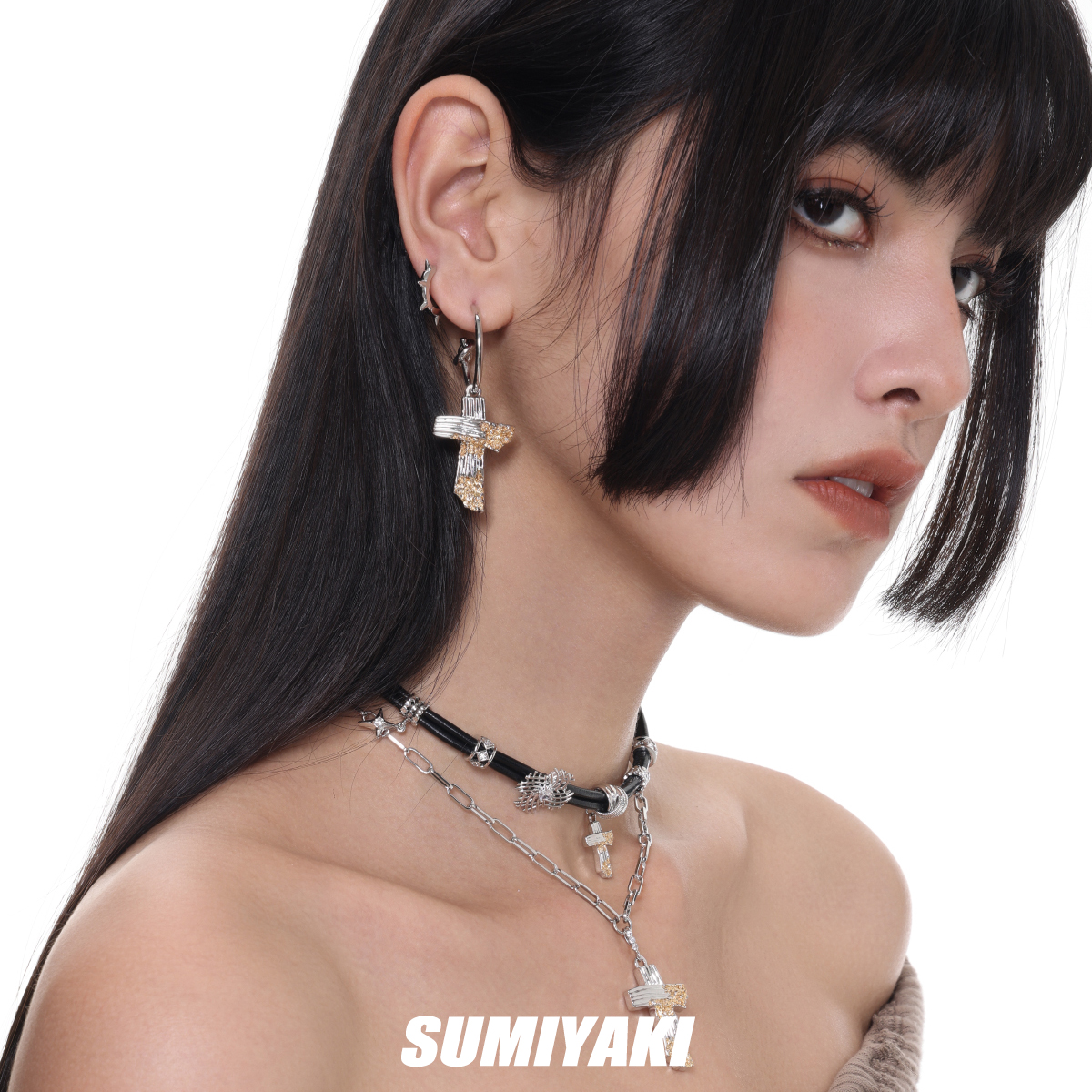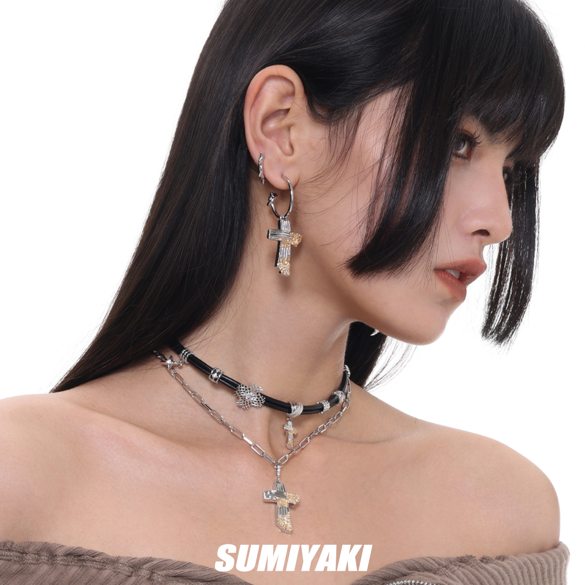 SUMIYAKI GOLD LEAF ASH SERIES AMERICAN RETRO GOLD AND SILVER CROSS EARRINGS-Taobao