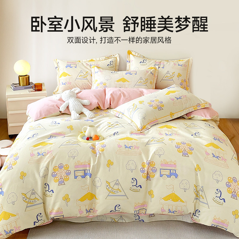 1 2m bed linen three sets (suitable for 150 * 200 quilt core) 1 5m bed sheet with four pieces (suitable for 200 * 230 quilt core) 1 8m bed sheet with four pieces (fit