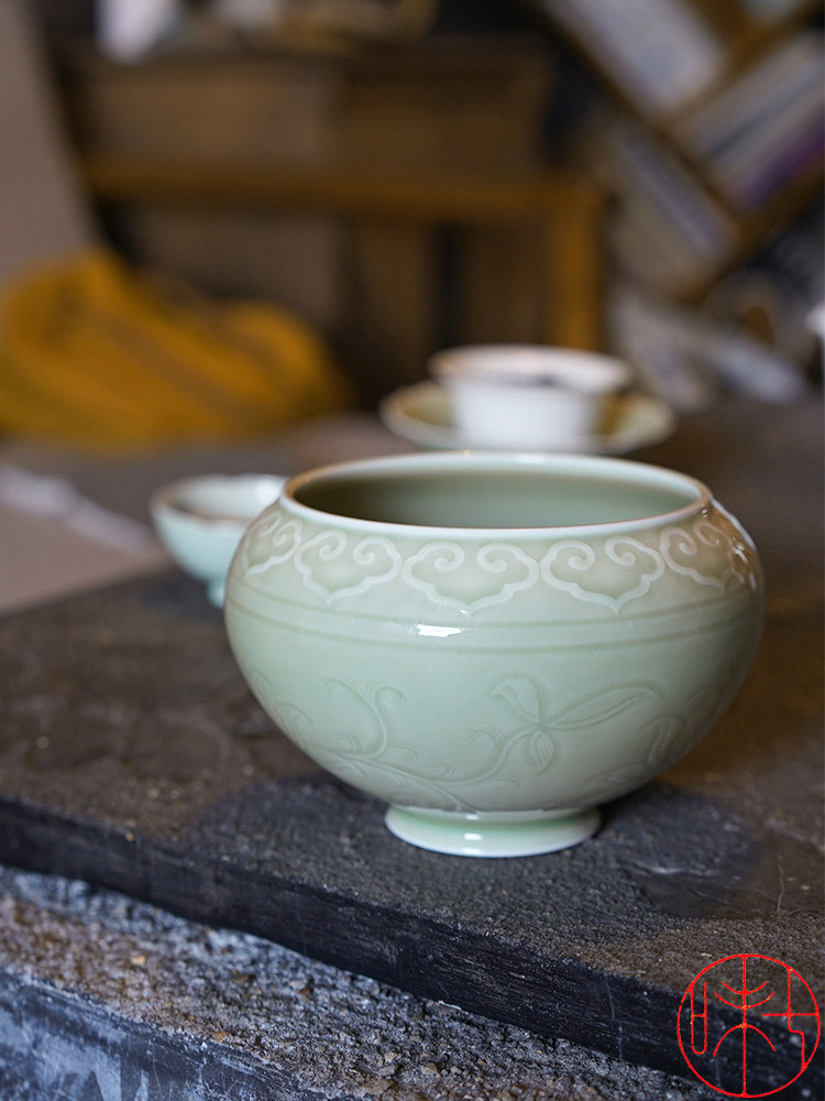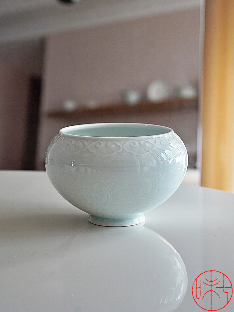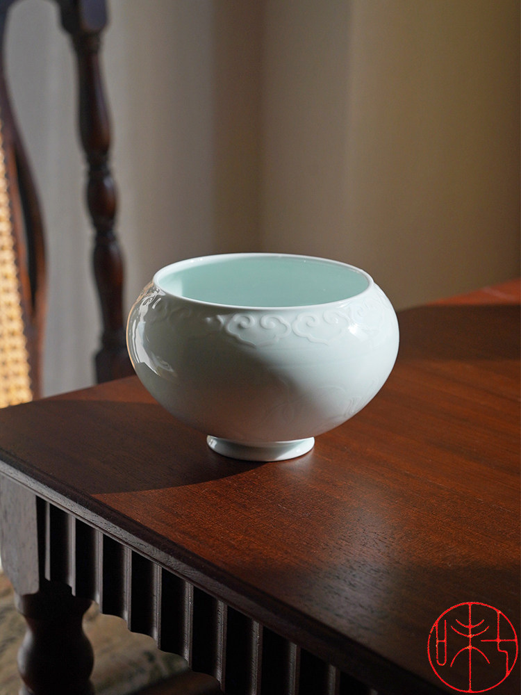 Seven Taste Original Antique Design Pure handmade lettering Ruyi Grass Water Spittoon Lake Tian Kiln Imitation large-capacity Home-Taobao