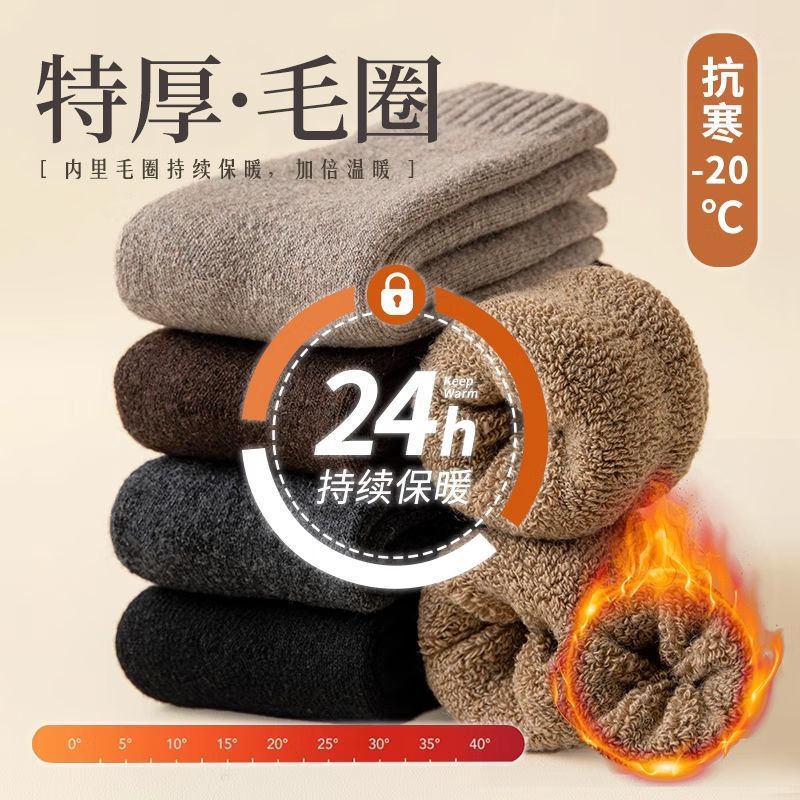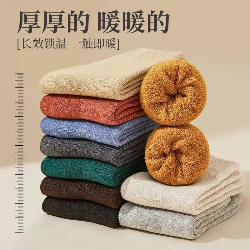 Gross lap Sox thickened male and female long cylinder socks plus suede autumn winter warm flooring Sox antifreeze towel socks men's snow socks-Taobao