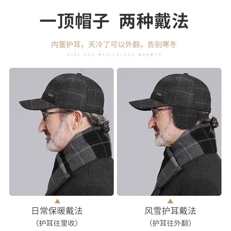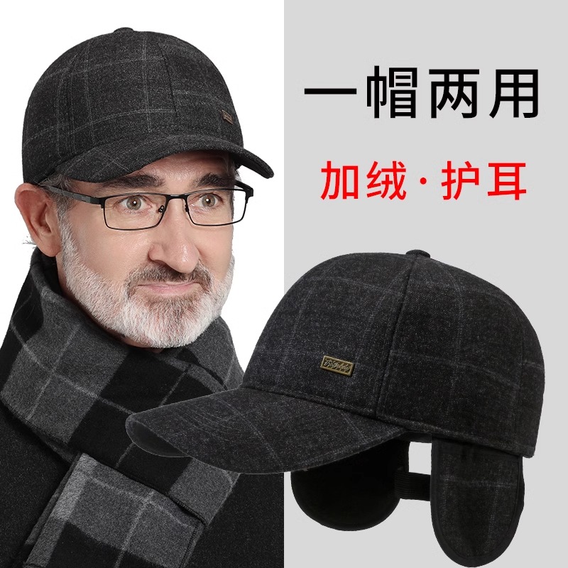 Middle aged hat Men's autumn winter old grandpa gush warm duck tongue cap daddy old man's ear baseball cap-Taobao