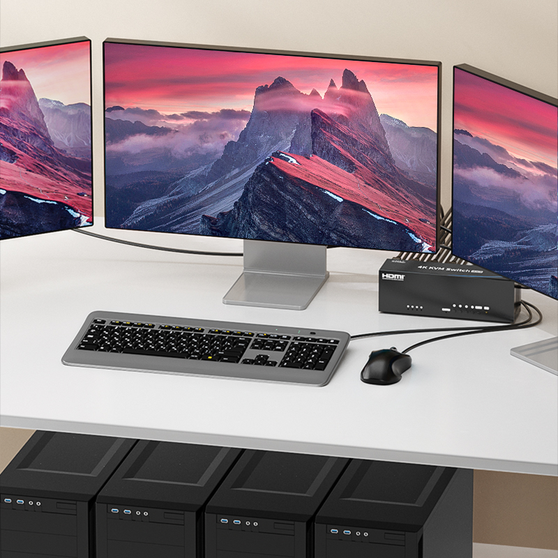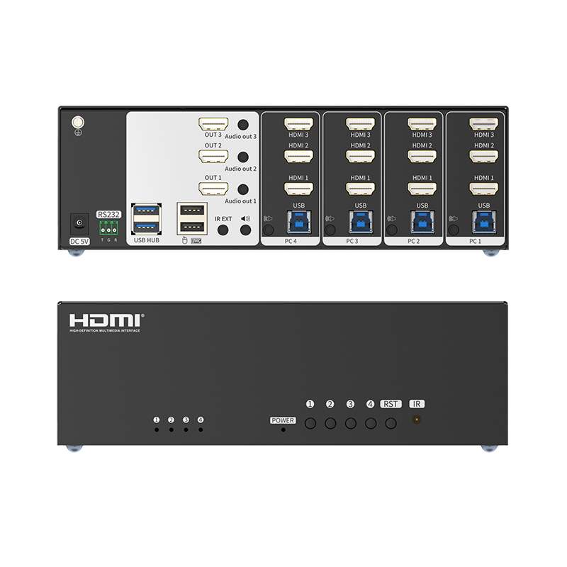 eKL 413HW HDMI KVM Seamless Switcher 4 in 3 Out of Computer Three Screen Extended Display USB3 0 Mouse Keys 4K HD Video Switch No Black Screen Seamless Switcher